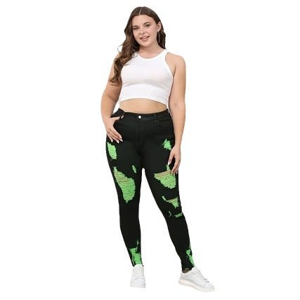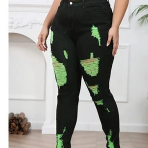 Be the first to review “Denim Trousers High Waist Ripped Contrast Color”