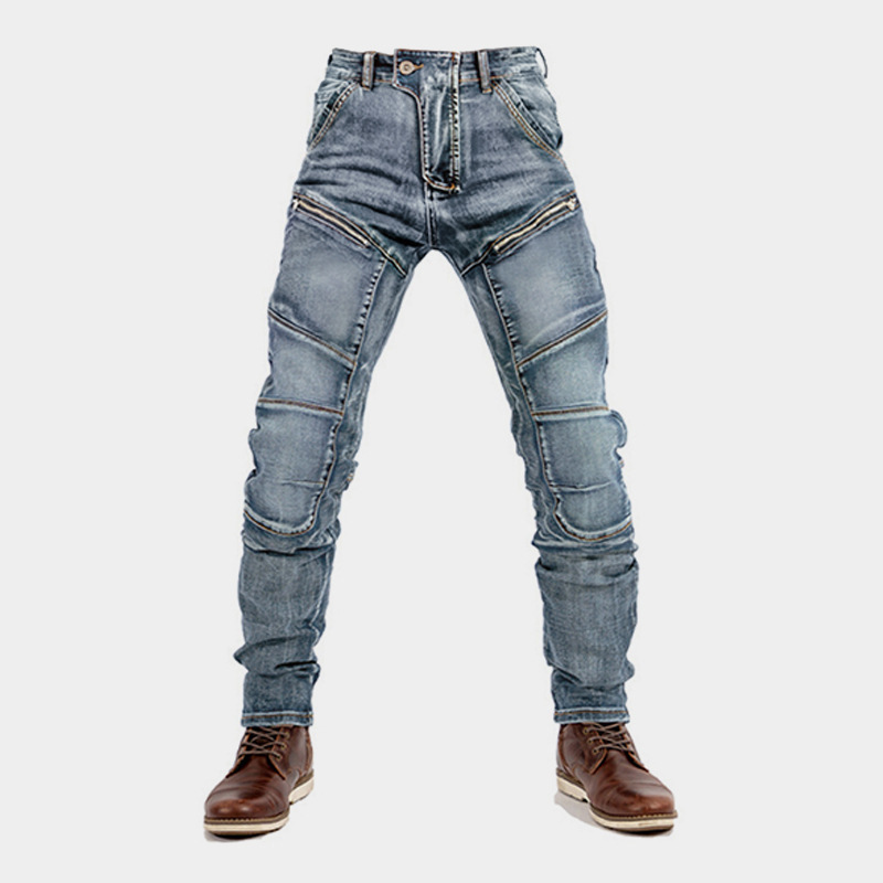 European And American Motorcycle Double Zipper Cycling Pants Four Seasons Slim Racing Anti-fall Jeans