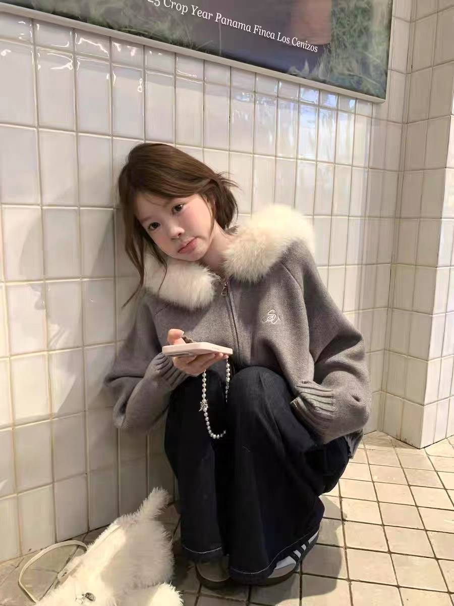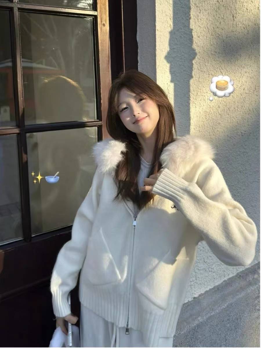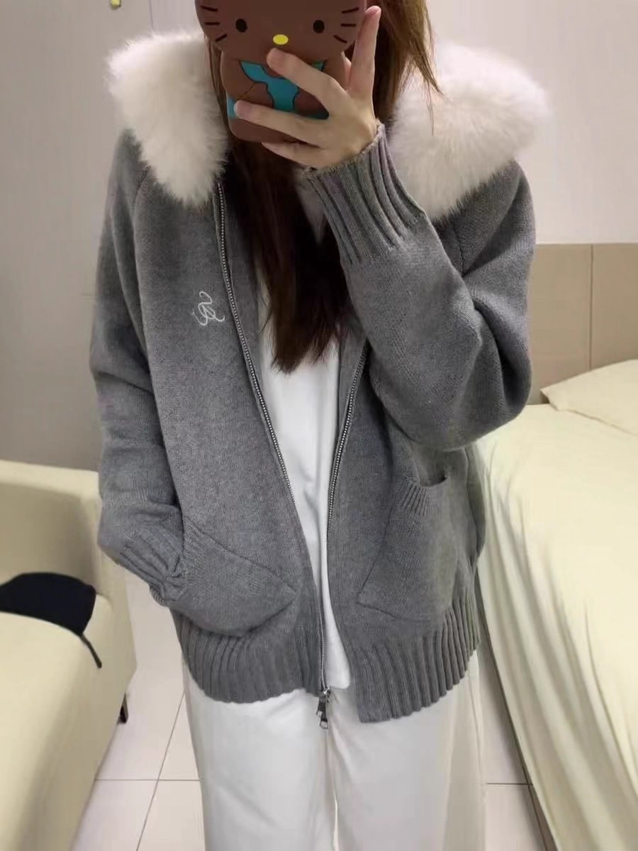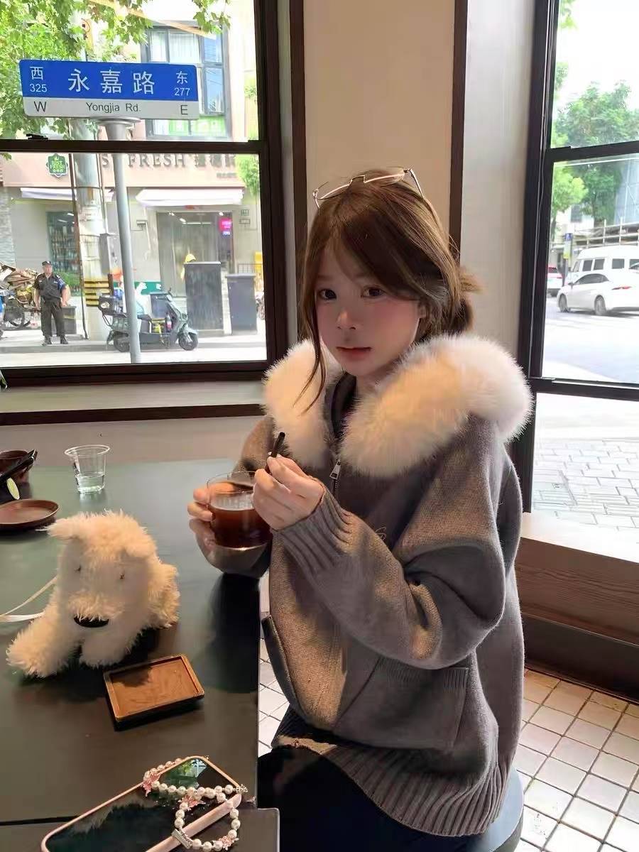Be the first to review “Fur Collar Hooded Knit Cardigan Women”