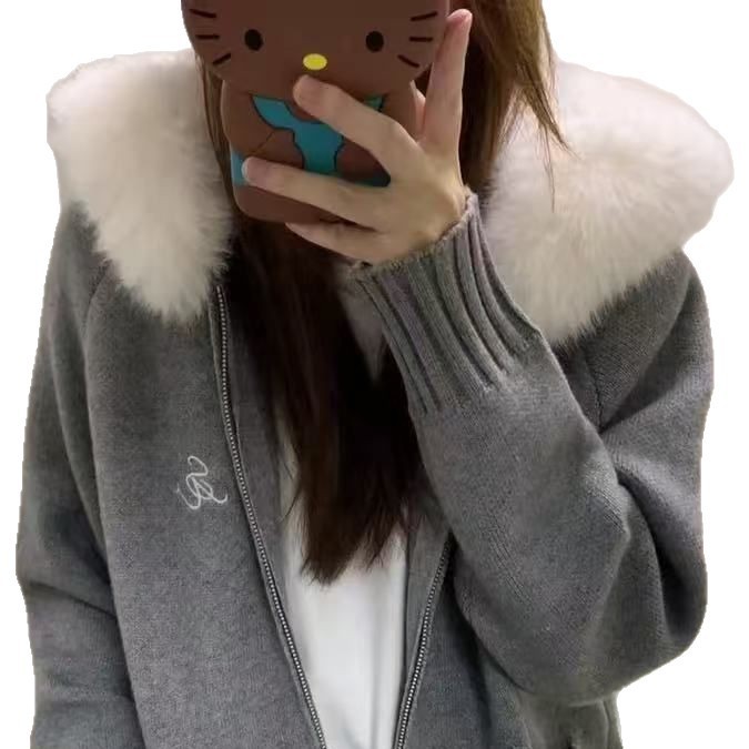 Be the first to review “Fur Collar Hooded Knit Cardigan Women”