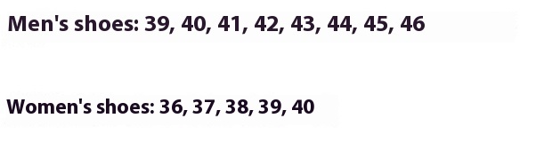 | Size | 39, 40, 41, 42, 43, 44, 45, 46, 36, 37, 38 |