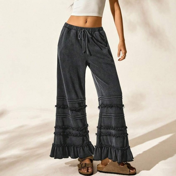 Summer Casual Vacation Style Black Worn Looking Washed-out Loose Flared Pants