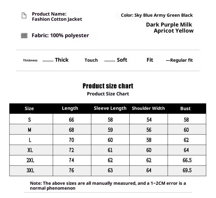 | Color | Milk Apricot, Black, Sky Blue, Army Green, Dark Purple, Yellow |