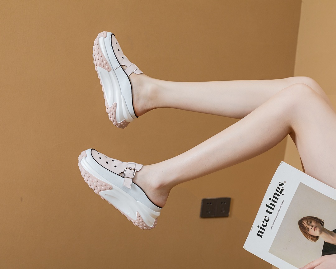 Women’s Leather Thick-soled Half Slippers